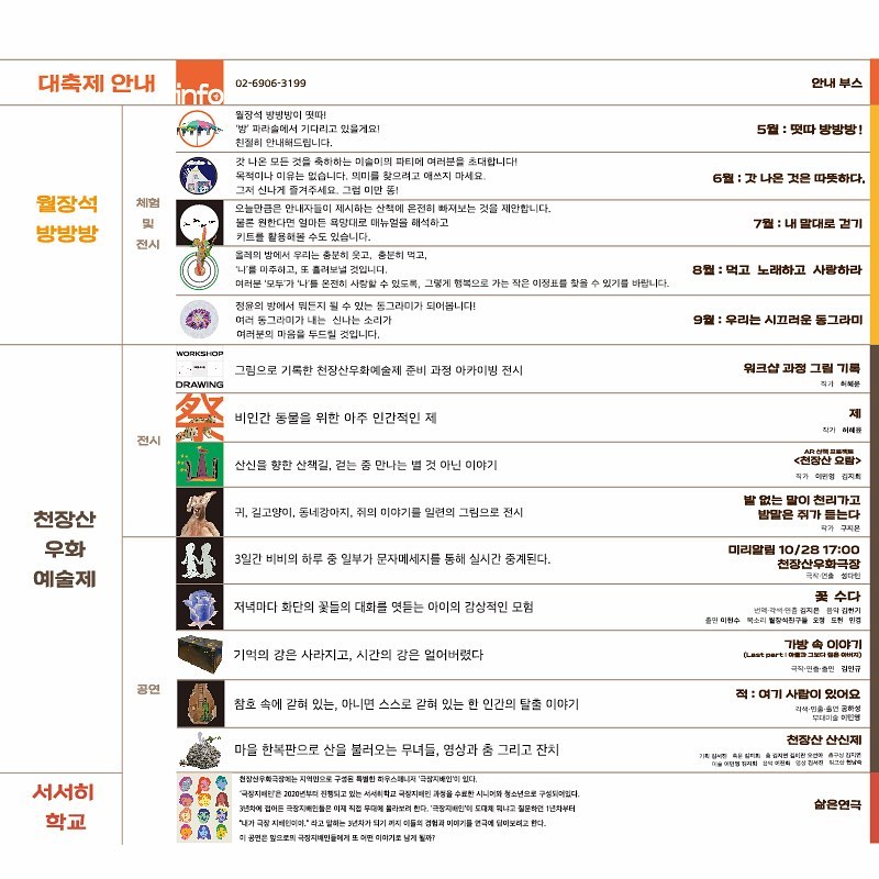천장산 산신제(축문), AR 산책 프로젝트 천장산요람(작가), 가방 속 이야기(음악)