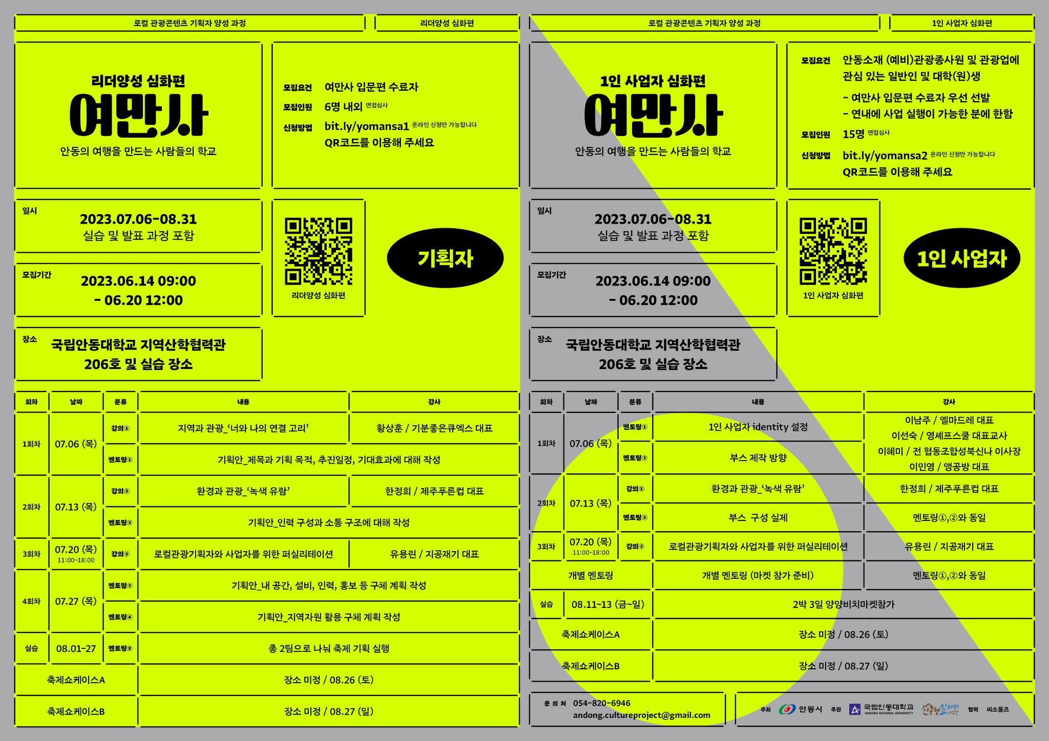 7월부터는 기획자와 1인사업자 과정을 나눠 실제 축제나 행사를 진행하는 기획 실무과정으로 나아갈 예정~!